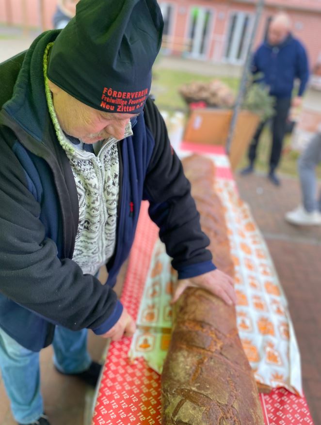Ein herzliches Dankeschön geht an das Restaurant „Die Gemütlichkeit“, das uns großzügig mit Schmalz unterstützte, sowie an unser Vereinsmitglied Gaby, das sich vorher selbst in die Küche gestellt hatte und an unsere ortsansässige Bäckerei ,,Schmidt“ für die Herstellung eines beeindruckenden 1,5 Meter langen Brotes. Gegen eine Spende konnten alle Besucher ein köstliches Brot mit Schmalz oder einen weißen
