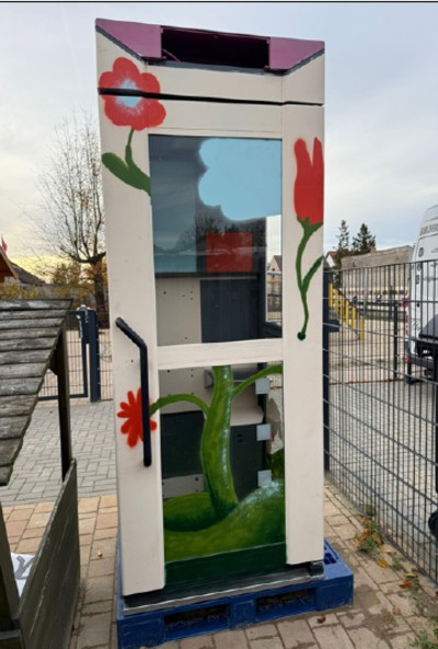• Außerdem bereitet sich die Einrichtung auf eine Bewerbung um den Titel „Buchkita“ vor. Als erster sichtbarer Schritt wurde bereits eine Telefonzelle angeschafft. Die Telefonzelle soll zur Bücherzelle umgestaltet werden und künftigals offene Tausch- und Lesestation dienen – für Kinder, Eltern und Familien.
